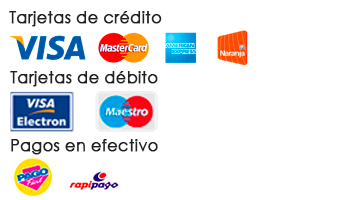 Mercadopago, transferencia bancaria y todas las tarjetas de crédito principales.